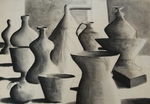 1973Gedachteloos, vanuit je gevoel tekenen. Met inkt en houtskool.